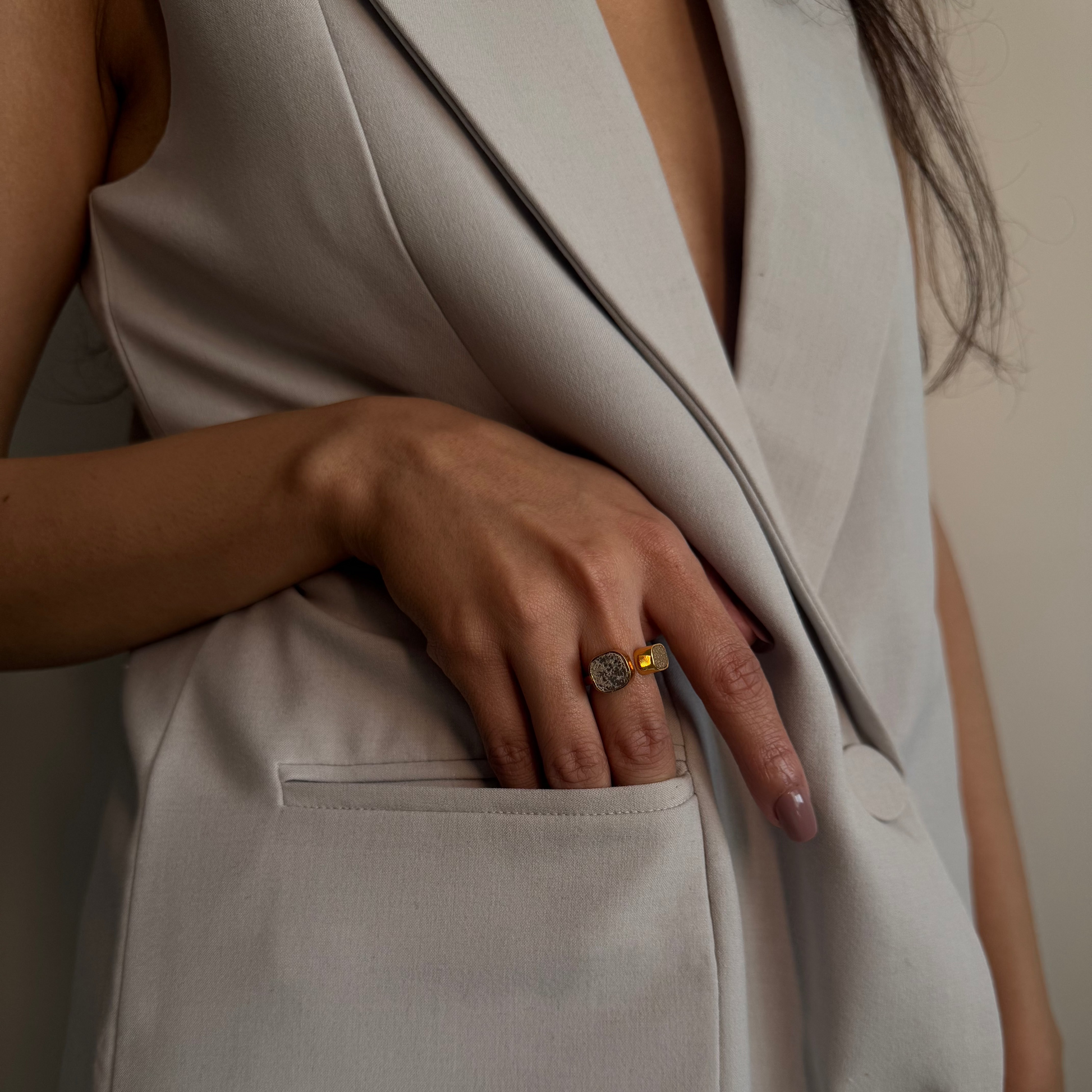 Elevate your everyday style with our Cube Ring! Featuring a sleek and modern boxy cube design in luxurious tones of gold, this ring is perfect for stacking and adding a touch of elegance to any outfit. Made with 18K gold plating, this minimalistic piece is sure to elevate your jewelry game.