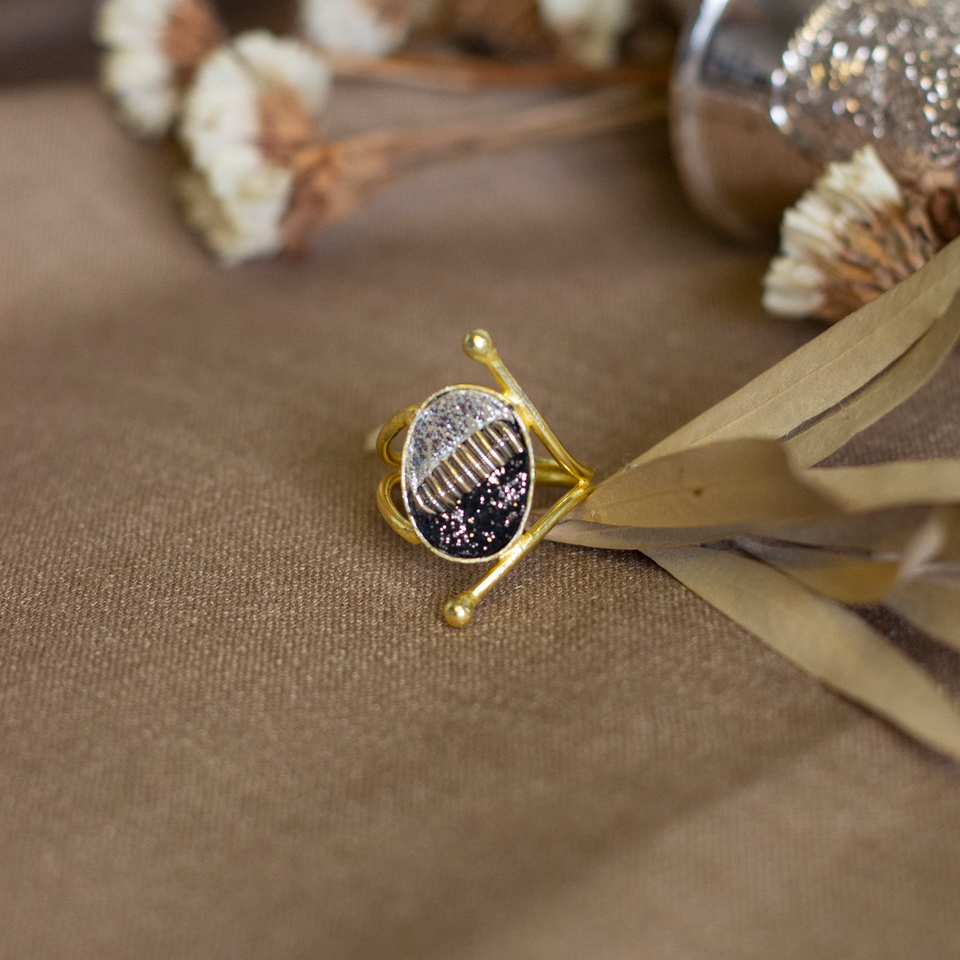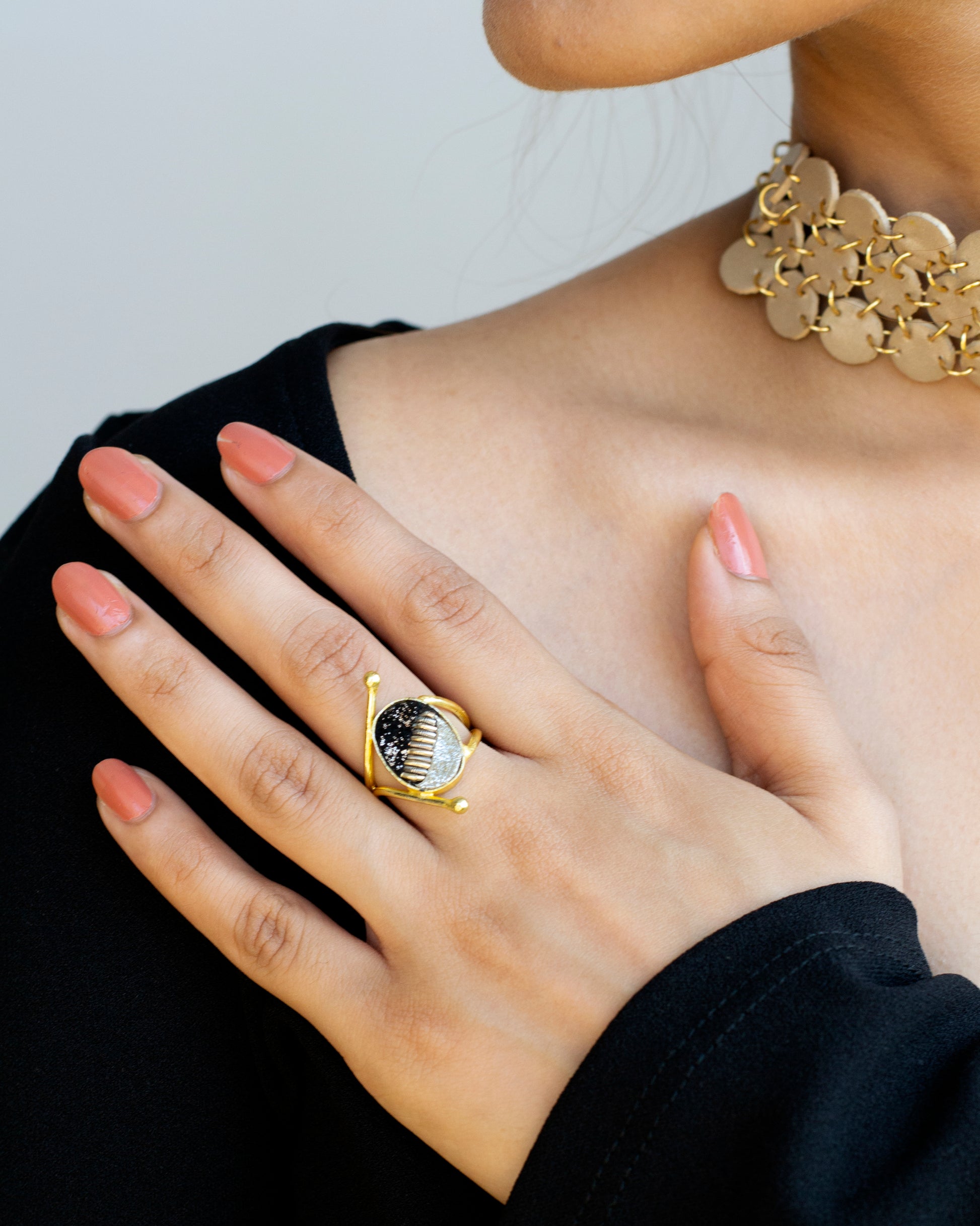 - The Ray ring is handcrafted with a delicate detail of gold and silver dabka alone with black/gold and beige/silver leather.