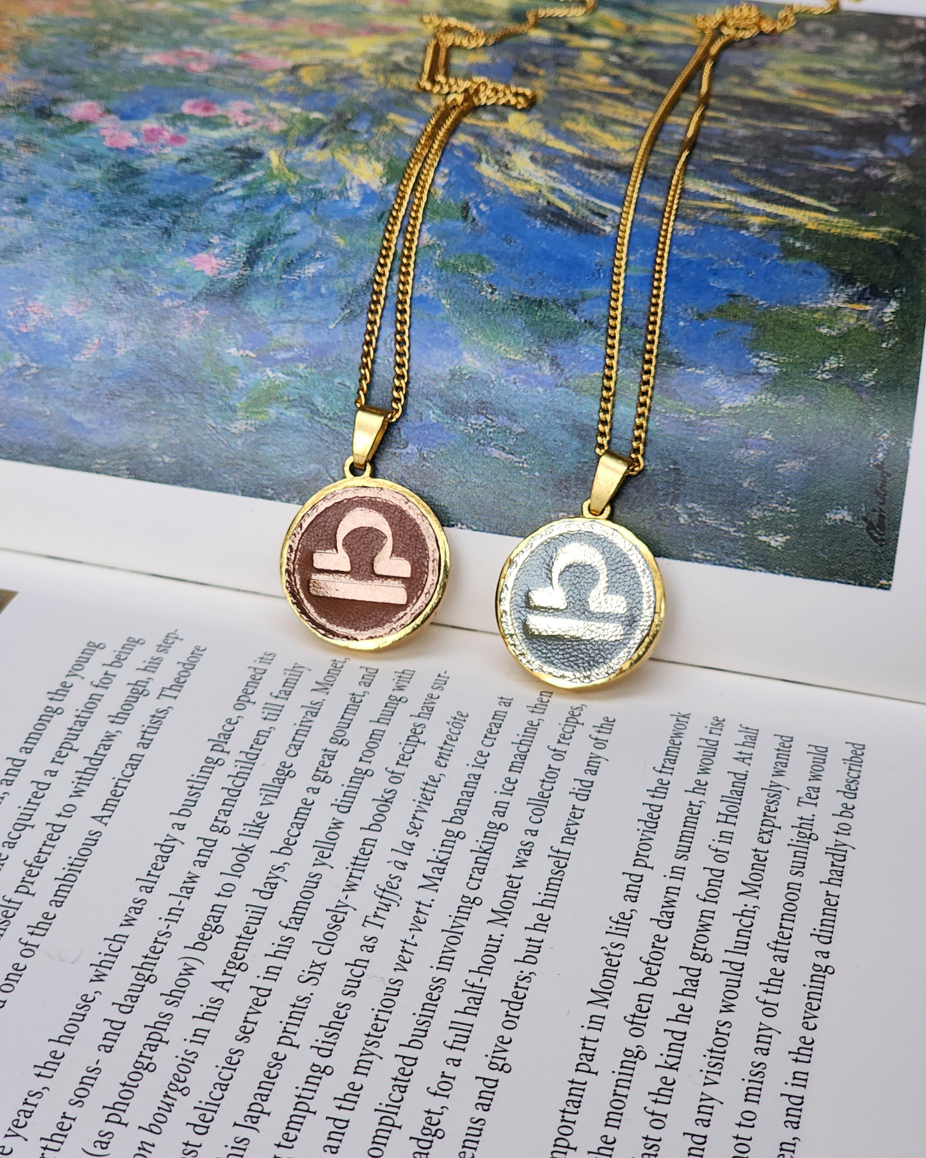These beautifully crafted Libra zodiac necklaces are the perfect gift for those born under the Libra sign, celebrating their charm, grace, and love for harmony. Each pendant features a gold-plated brass medallion with an embossed leather insert, showcasing the Libra symbol in a style that reflects the balance and elegance of this sign.