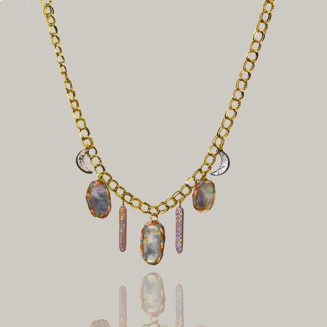 Description Indulge in luxury with the Aurora Drop Neckpiece. Handmade in brass and 18 carat gold plated, this deli...
